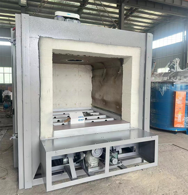 鋁合金壓鑄臺車式退火爐也叫臺車式鋁合金退火爐、鋁絲退火爐主要用于鋁合金、鋁板、鋁絲均熱退火等熱處理。 鋁合金壓鑄臺車式退火爐,臺車式鋁合金退火爐,鋁絲退火爐外殼有鋼板和型鋼焊接而成,爐體底部與臺車輕軌連為一體,臺車的行走由減速機(jī)傳動鏈輪帶動走輪在軌道上。裝料時將臺車開到爐體外,裝完后把臺車開進(jìn)爐體內(nèi)加熱,操作簡單方便,用戶不需要基礎(chǔ)安裝,只須放于平整的水泥地面即可使用。